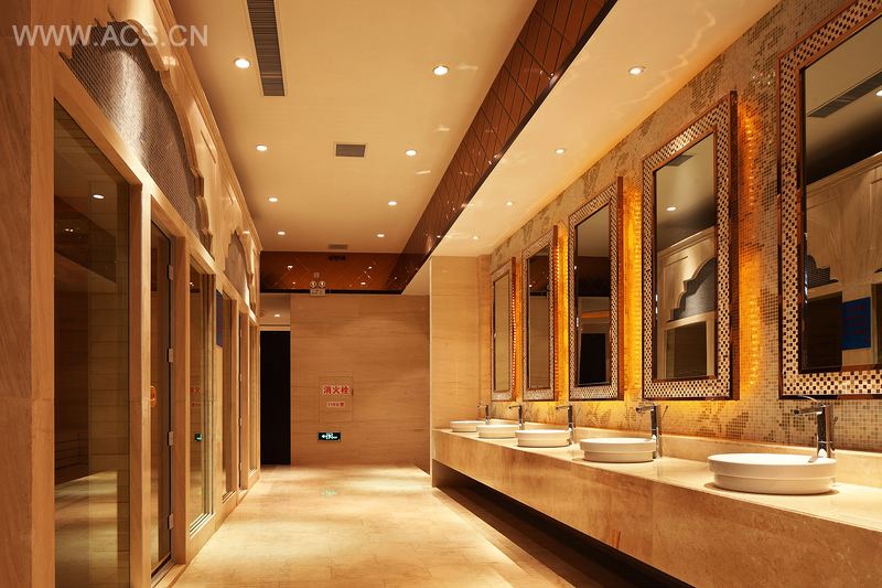 整个设计融入异域土耳其风情,将“奢华的休闲空间”结合桑拿发源地文化,通过材料、造型、符号的整理和融合得以体现。乳白的基色配以不同颜色的灯光,把空间渲染成多异的感觉:梦幻的居室、明亮的大堂、华贵的休息厅、充满幻想的浴池。镜面、大理石、马赛克、花格镂空元素的文化符号及特质石材的运用巧妙地塑造出空间细腻恢宏的感觉。异域造型符号及纹案的运用为空间注入了灵魂,为本案增添了神秘的色彩。