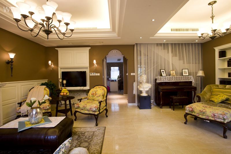 此项目为420平方米的城市联排别墅,满足五口之家个人不同生活方式的同时,又增大了地下室的空间,添置工人房、储物间、客房、休闲娱乐空间。美式建筑的结构限制了室内的采光面积,故把一层的公共空间完全打开,让整个一层空间更开阔。厨房与餐厅处在同一空间中,通过多功能吧台的分隔,使得两者空间共同,功能独立,完善了多个家庭成员的使用功能。二层空间突出了一个家庭起居室,兼水吧及书房的功能,满足在主人私密生活的空间丰富生活方式。三层主要是家庭主人空间,把原有的楼道空间利用,满足了衣帽间、独立大卫生间及学习休闲空间的所有功能,当然休息空间也加强了舒适度。