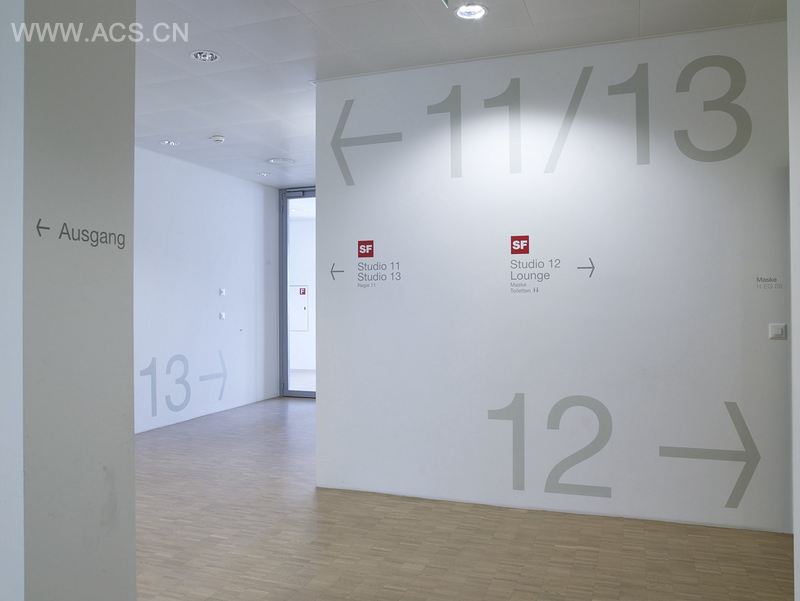 设计师试图为该工作室打造简洁的引导标识。白墙和灰色的数字会瞬间吸引客人,并指明方向。