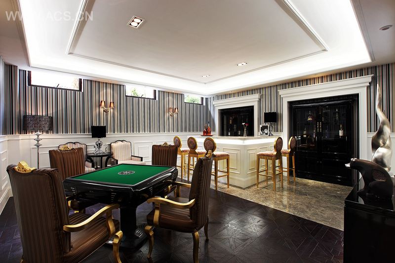 650平方米的双拼别墅户型,大气而又实用,气度非凡,一幢承载家族荣耀的房子。白色简约欧式是主基调,调和暖色灯光、布艺和饰品,温馨而高雅,宁静而不失奢华。负一楼的娱乐空间和茶室是本案的亮点,将最容易忽略和遗忘的角落变成亲朋好友相聚的party,或饮杯红酒,或品杯热茶,一半热闹,一半宁静。挑空两层的客厅尽显奢华气质,典雅大方的餐厅相得益彰,主人房、老人房、客房等等都是温馨典雅。阁楼加建的书房画室和整体衣帽间更是将奢华空间再次扩张,将高贵优雅发挥到极致。