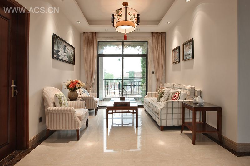 本案以中式风格为主体,让其彰显优雅细腻的中国文化,且不失奢华、高贵。简约是细节上精致卓越的追求,是舒适愉悦的氛围,简单的大理石拼花电视背景墙把客厅与走廊和谐地区分开,木花格结合山水画的设计即提炼了风格又营造了浓厚的中国传统文化氛围。整个空间被线条花木格穿引,使得每个画面得到了相互的协调、呼应,生动地塑造了精炼而高雅的生活格调。
