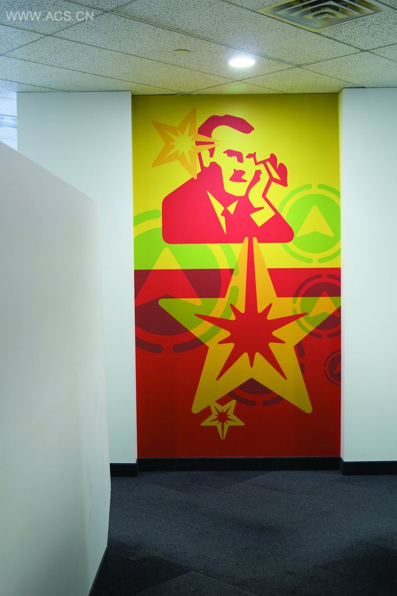 坎贝尔·米森公司需要一种新的展示方式,一种能让工作人员和客户重新发现或重新考虑“坎贝尔·米森”到底意味了什么的展示方式。我们意识到,这次任务中很重要的一部分是重新取得人们的信任,因而提出了7种定义方案以及相应的图解。每个图标都充当了这些方案的试金石,这些方案对坎贝尔·米森公司的成功来说则至关重要。公司每一楼层的电梯大堂中可反复见到这些元素,打造出了坎贝尔·米森的品牌,以崭新的个性迎接访客和工作人员。公司的定义方案对发掘室内的特性和文化非常关键,而对于如何定义这样一个面向客户、协调各部分构成的公司,定义方案也尤为重要。人们一踏入办公室便首先看到公司的七大宗旨,