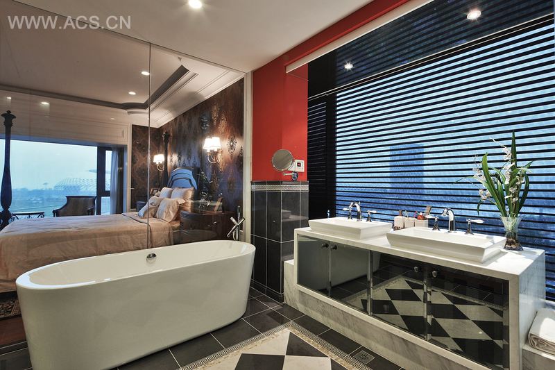 做过设计的人都知道,红色在空间中的运用必须十分的谨慎,因为红色过多往往容易造成视觉疲劳。怎样让红色贯穿到整套房子而又不为过,我们作出了多方面的考虑。设计图纸几经修改,又几经反复,斟酌权衡下还是采用了最初的方案。
