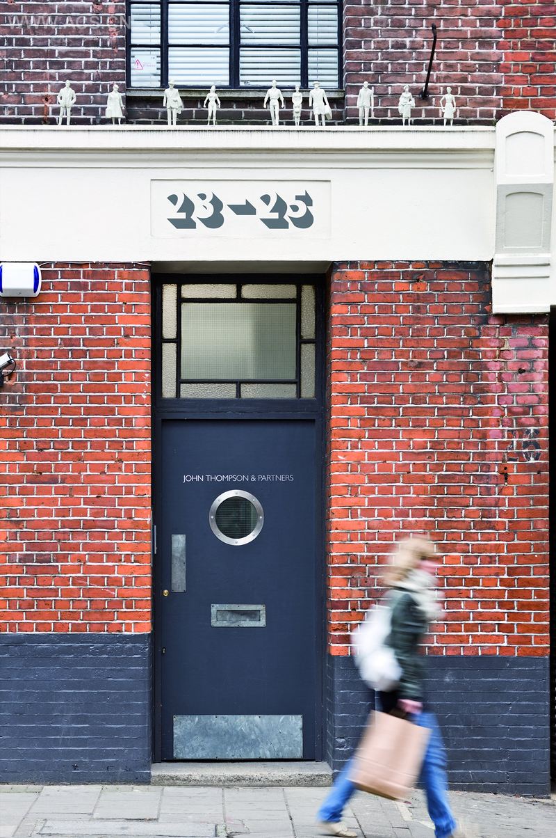 这是为国际性的建筑规划事务所——约翰•汤普逊及合伙人事务所设计的公司形象和环境标识设计。设计使用了建筑结构模型和数据的语言,在办公室四周设有符号和数据。