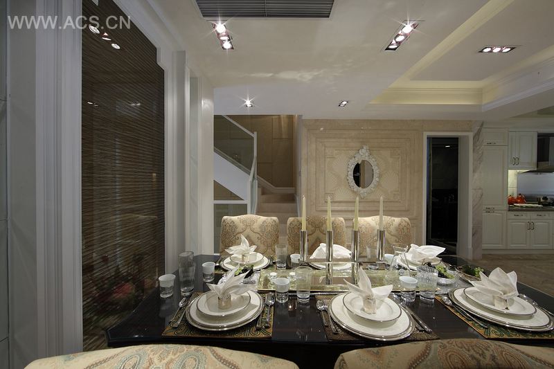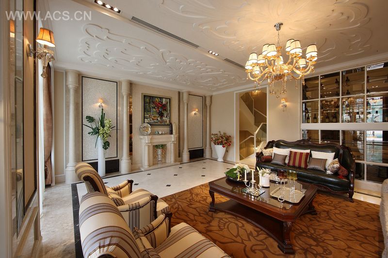 设计师以巧妙手法呈现出大宅的艺术古典美。连贯整体的落地窗户把整片室外美景带进室内。将贵族欧式生活与大自然完美融合。