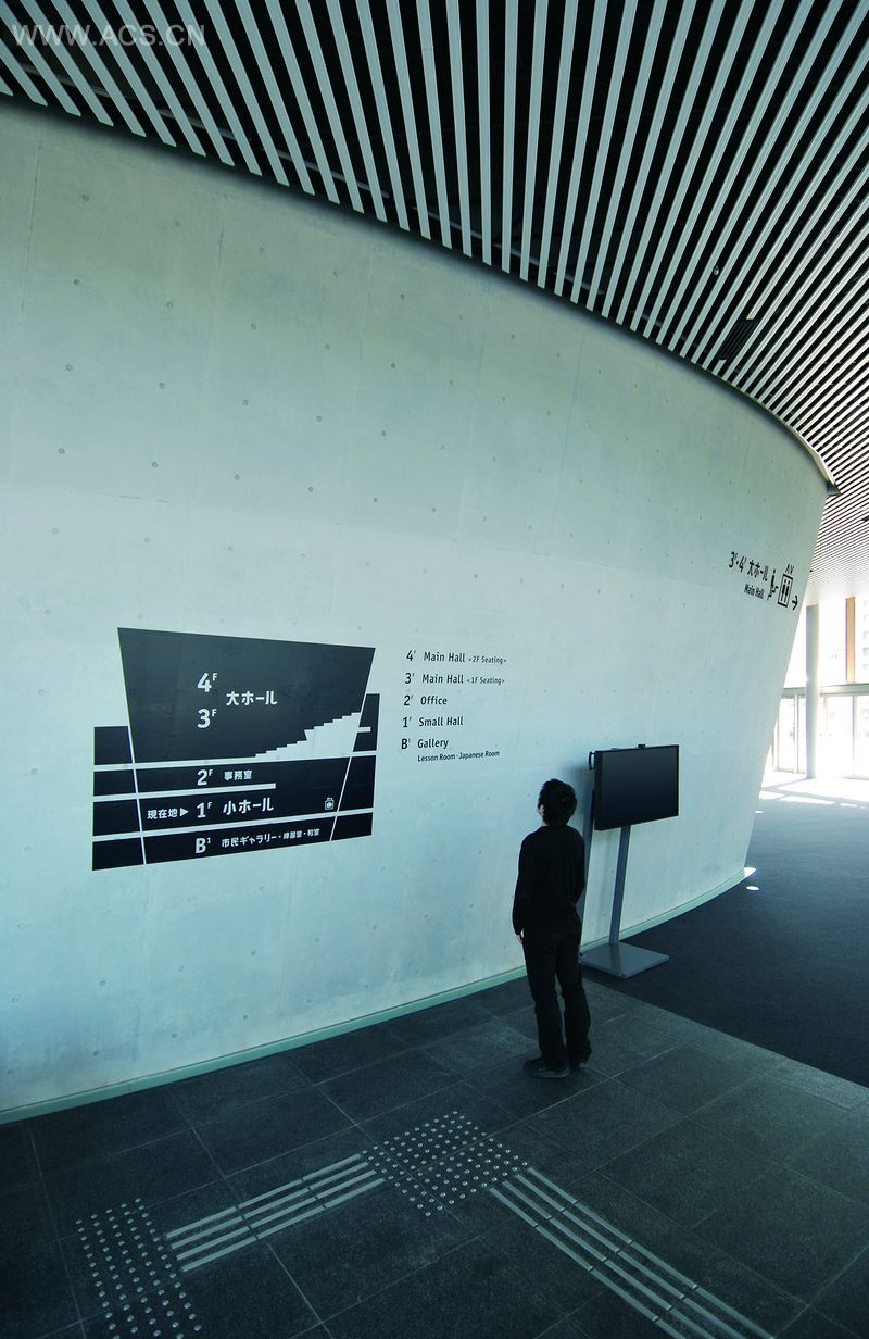 我们可以看到,这个项目中的黑色地板和灰色的墙壁为这个社区活动中心营造了平和的气氛,所以为了保持一致,设计师也使用了黑色的字体,而可爱的导视图形则使得这儿充满了活力。