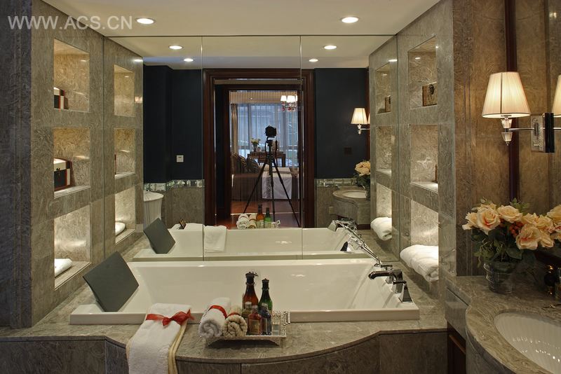 - 主要用材:啡网大理石、墙纸、布艺、银镜等