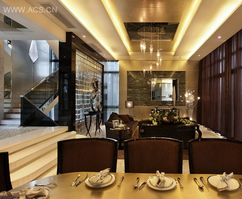 这所楼高五层的800平方米別墅成为主人闲时享受高品位生活的度假別墅,并以素净优雅的处理手法重新定义了21世纪时尚豪华的生活哲学。而本设计的主题是时尚瑰宝,顾名思义,是让本別墅成了主人超凡脱俗的身份象征。高雅而不流于世俗的华丽设计,顺理成章地成了设计的轴心方向。