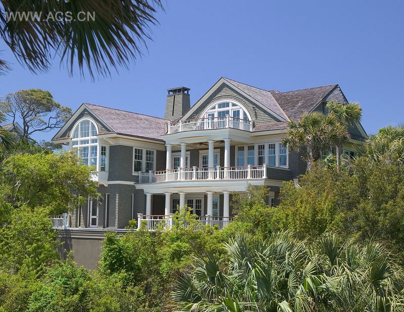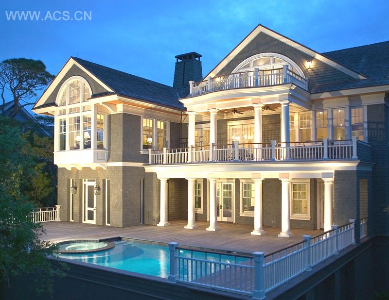 这个建筑在设计上具有“跳跃性”或“颠覆性”:主要起居/娱乐空间被设计在二楼。这种格局分布能够让视野越过高尔夫场,望见海洋碎浪翻涌。一楼拥有大部分的客房和一个同时被用作家庭影院的次起居室。一楼的一个房间作为儿童双层铺位房,拥有内置上下铺位。在床头板位置上都有DVD播放机或是可供阅读的书本,供孩子们使用。宏伟的大厅中设计有旋转楼梯,通往一个钢琴曲线形的阳台。由于起居室位于二楼,屋主可以经由此处导引客人通往屋内。