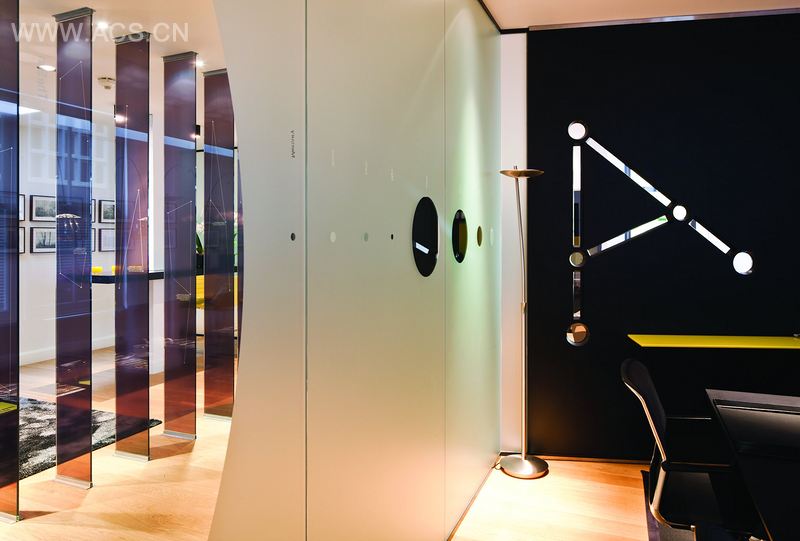 这是为国际地产开发商阿尔玛堪达的伦敦总部做的导视和室内图形设计。由于该公司的名字为“地平纬圈”之意,设计便基于天文图像的基础上。