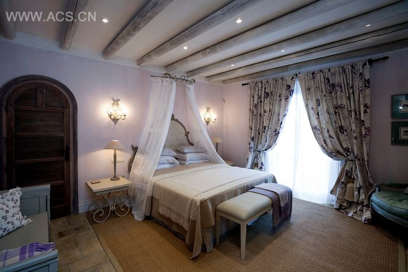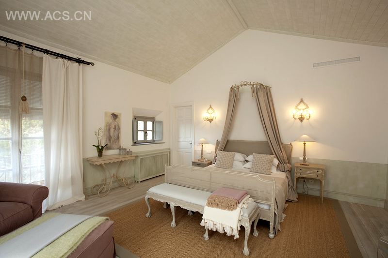 5个卧室套房中每一个都包含有独特构思的卧室,还有浴室或防水淋浴室。主人卧室套房中也包括有带有壁炉的壮丽卧房、男女主人的更衣室、书房和一个最先进的浴室。员工住宿与主屋相隔开来,它是一个自给式公寓,带有宽敞的厨房、起居室、露台、一个卧房以及浴室套房。