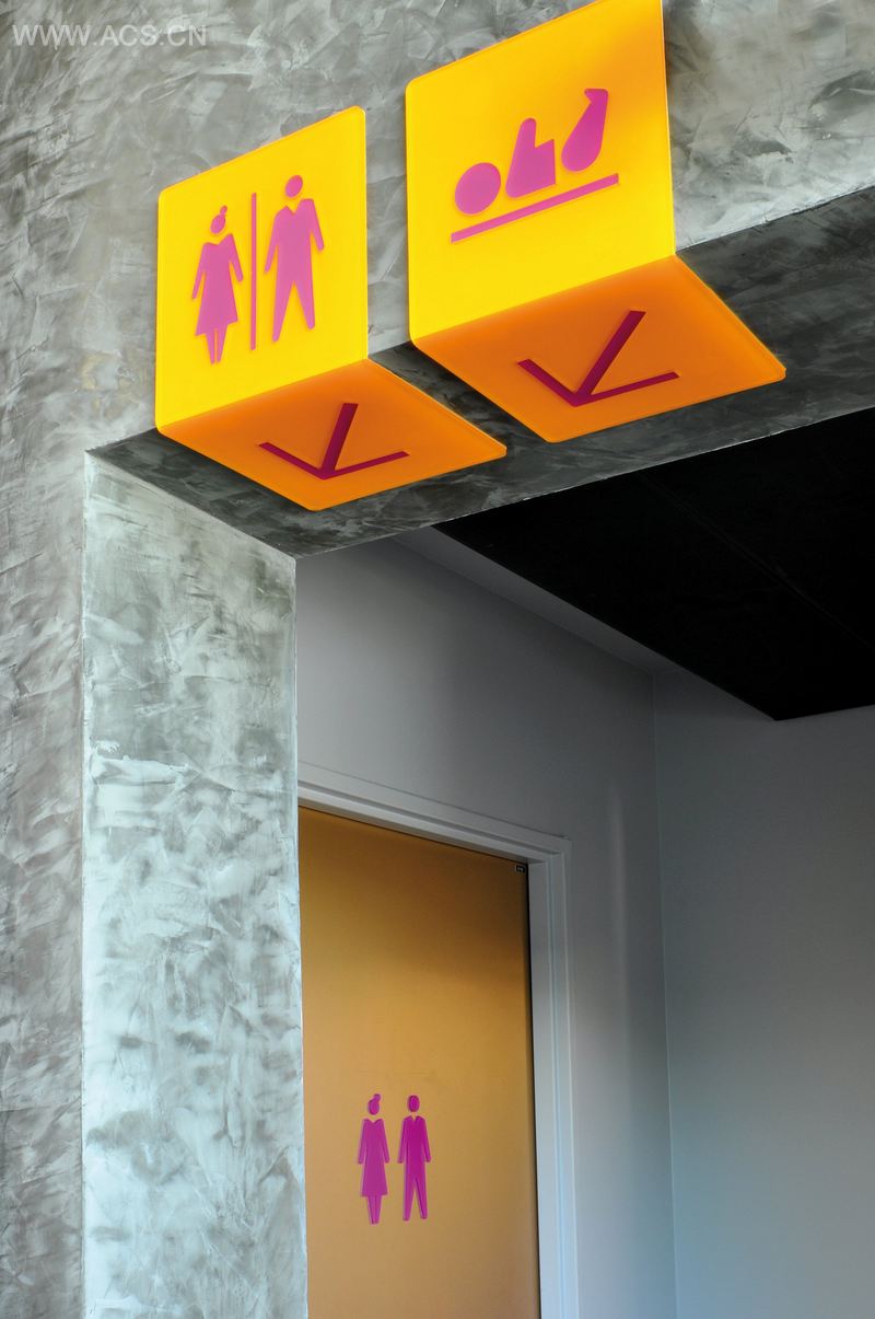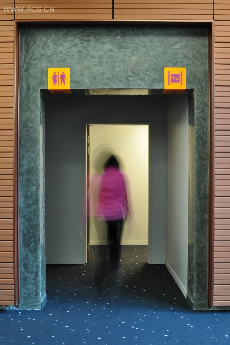 这是一栋简单的建筑,使用了混凝土、 砖和玻璃,材料可直接辨认,而引导标识注重了材质和色彩,使得它们看起来庄重而且因为对比、分解和镶嵌而引人注目。整个建筑框架内灵活而有趣地吸收了不同的元素。