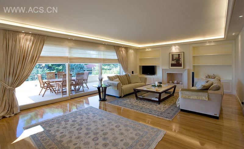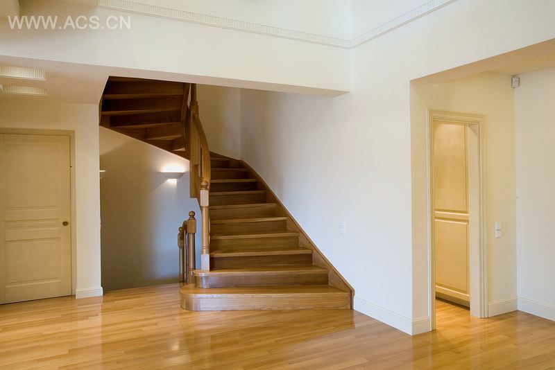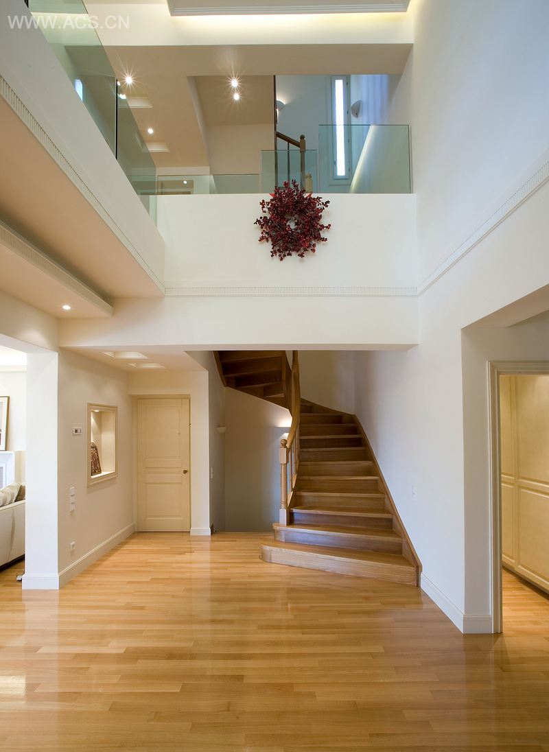 这两栋私人住宅各占地460 平方米,为三层空间结构。其中一个核心理念元素在于主中厅的设计。这个中厅统筹着各项功能、活动和空间布置,迎接着由主入口进入的住户和来客。浅色系色调、玻璃而非围栏以及隐蔽照明的使用,与实木地板十分搭调,营造出一份怡人的氛围,令视野轻快而开阔。在如何保证物理照明能够到达绝大部分空间、甚至是地下空间这点上,我们给予了特别关注。例如,利用其中一个地下厨房延展至建筑基层周界处这一结构特点,我们能够很大程度地使用自然光,这使得这个空间的整体感觉都发生了变化。室内设计师Fani Papadopoulou参与了这两个住宅的室内空间设计。
