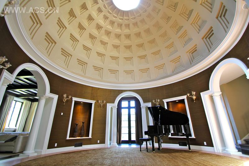 该大型的地产占地0.4公顷,有5间卧室和5又1/2间卫浴室,大约743平方米。别墅得名于受万神殿启发的7.3米高的有可缩进天窗的圆形大厅。给人深刻印象的“穹顶”入口是按罗马原来万神殿的六分之一规模大小打造的复制品。