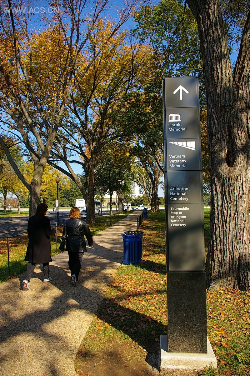 国家广场和纪念公园为美国最珍贵、最值得纪念和颂扬的地方,内含50多个博物馆、纪念碑和纪念馆。导示项目欢迎游客,为他们指明了博物馆、纪念碑和纪念馆等的方向。导示系统包含了两种规模的桥塔指示牌,两种都由花岗岩基石和搪瓷板制成。另外,还有60个全新的游客友好型地图,分3种尺寸。该项目囊括了500个引导标识、36个新象形图,指明、突出了目的地,每年为2 600万名游客服务。