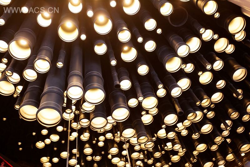 低一点的圆屋顶那儿的楼梯是定向的,那一块儿屋顶被塑造成巨型闪电的样子,照亮了下面的圆形空间。闪电装置由 600 个各种直径的下水管组成。每一个管里面都安装有一个 LED 照明。
