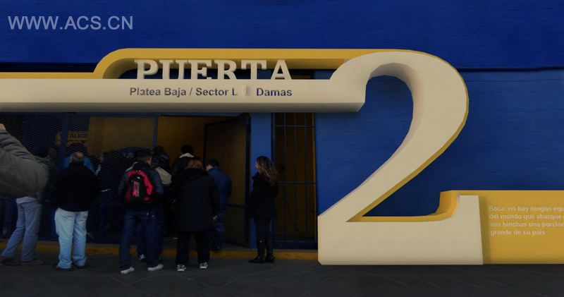硕大的字母优化了该导视系统,指出入口、大门和公共区域。体育场成为了这个视觉识别系统的一部分,还结合了白、蓝和黄三种代表色,通过导视设计打造活泼的全新体验。