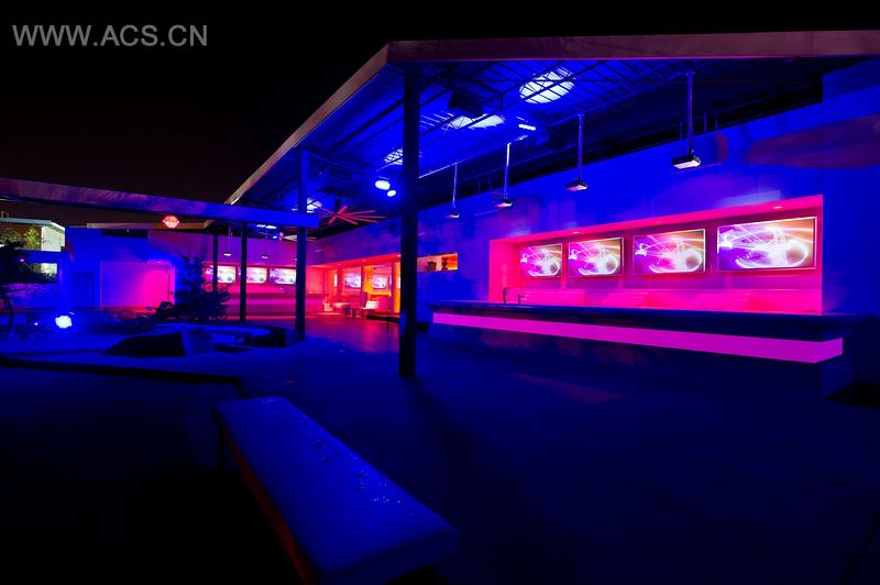 我使用超大尺寸的深色鸡翅木作为支柱,定制无缝对接釉面的黄色玻璃板分隔开了豪华座位区,也隔开了整个空间。在每个座位区上方的托盘式天花上,我在铬鼓中使放置了黑色烛台。反射光产生出一种光芒无尽的假象。锡耶纳黄色大理石台面使得本就丰富的室内更上一个水平。