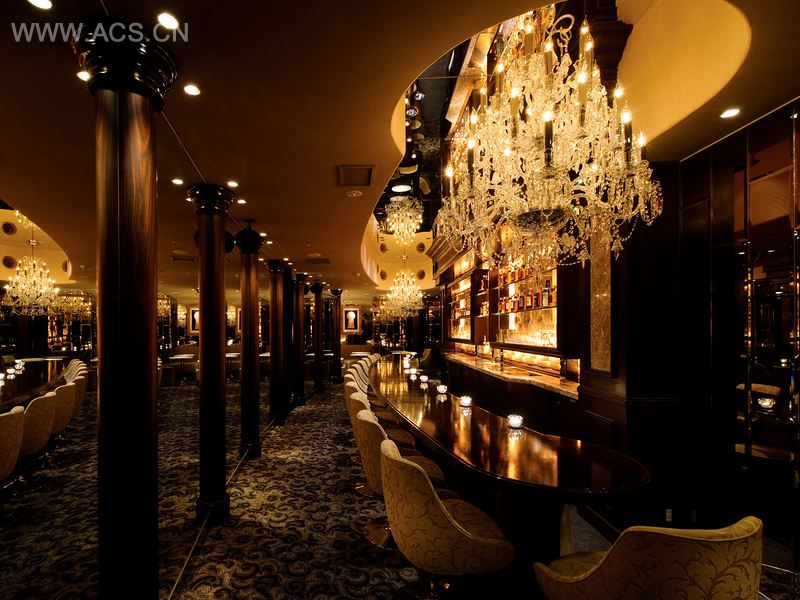 一个非常精彩的表演——在餐厅中部两米高的舞台上、以六米长的钢管为道具的钢管舞表演。空间上各种设计交汇,展现出不同的品味,各个区域绚丽的色彩,衍生出更多迷人而多样的空间。