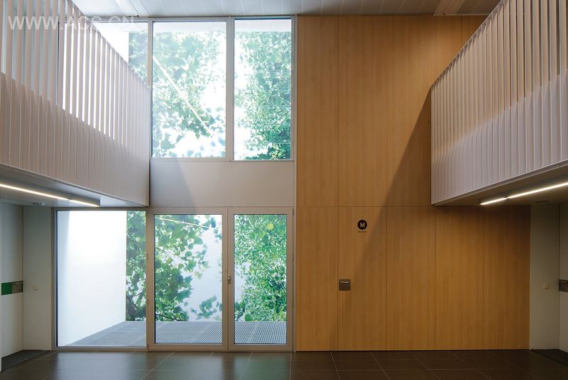项目采用了三种图形工具,帮助人们在建筑内定向和走动。第一、印有清晰的直线。第二、每个房间都有象形图且放在显眼的位置。最后,就色彩而言,每层都被定义了一种鲜明的色彩,而且没有采用灰影,因而可以被很快地记住。这三种元素简单、容易理解,方便了人们在建筑内的走动。