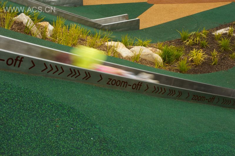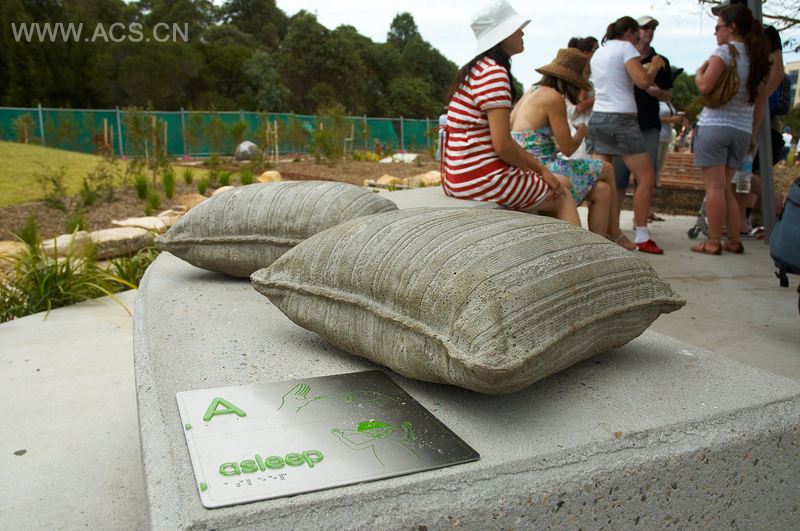 难题在于我们如何表达所有的字母,才能使得孩子乐于去探索字母表、学习手语。我们创作了26个独立的标识,能融进游乐场的不同地区,鼓励发现的过程。我们还创作了3D的物体和大型图像,阐释所选单词,把他们放在指示牌附近,使得单词以趣味的方式呈现。混凝土垫层将字母“A”用单词“asleep”展示,把树脂做成的果冻模具上色,用果冻“jelly”代表字母“J”。这些指示牌的高度适合儿童和轮椅用户。