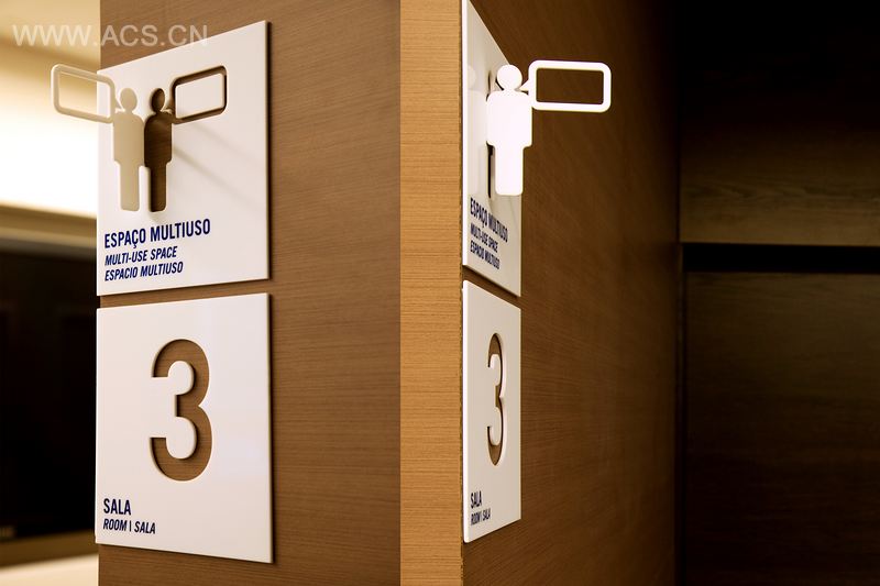 这个为Fundação Dom Cabral设计的导视项目使用了投影的理念,象形图并没有完全贴于墙上,因而远远就能看到。整体设计专业统一,参考了Fundação Dom Cabral对未来的愿景。而它今天已经是世界上最棒的商业学院之一。