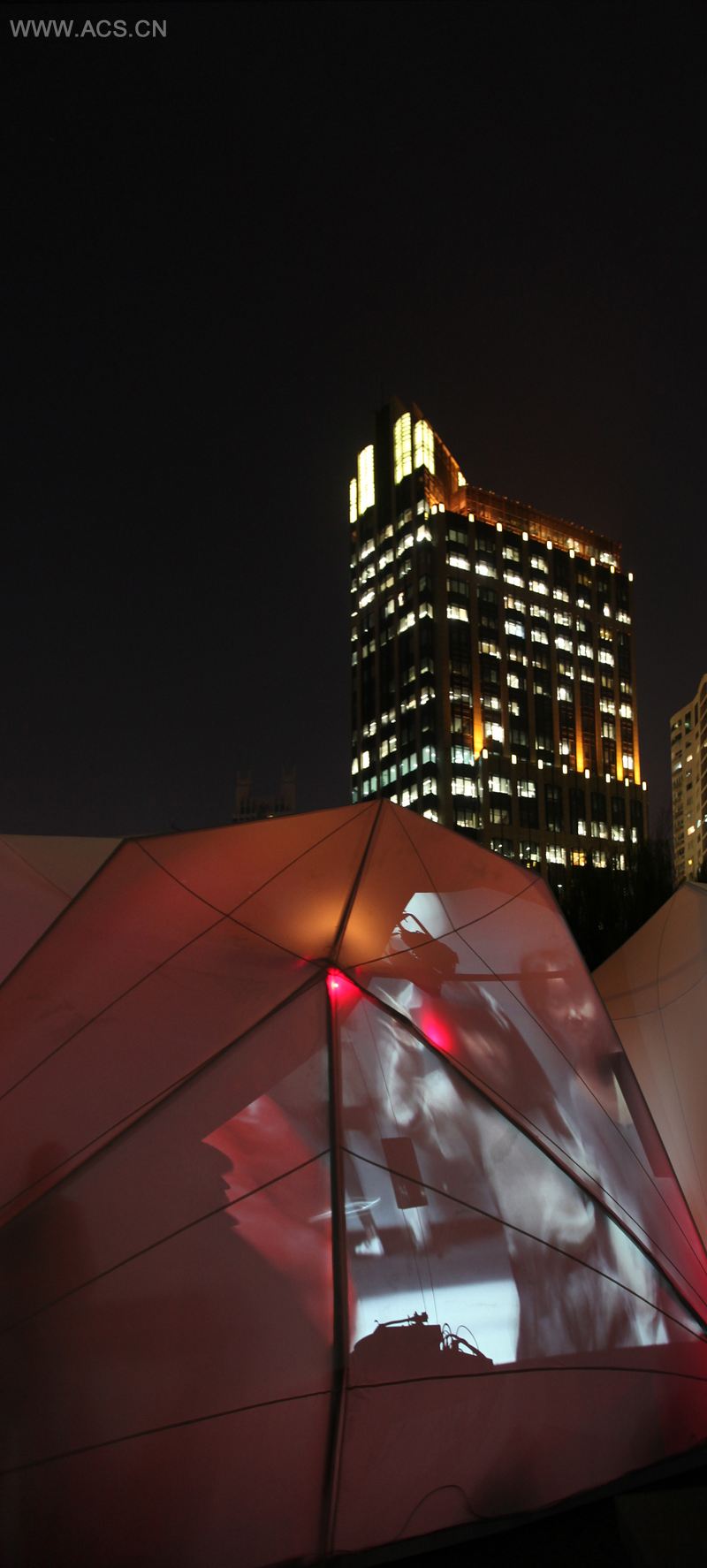 软装饰的帐篷结构和流动的空间影响里面人们的活动。互动装置和激光设备安装在帐篷的特别区域,以此营造出愉悦的氛围。