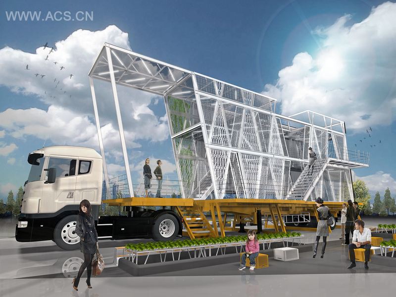 标准广告牌房子主要是由一个拖车底座构成的,是一个带有广告牌的3层楼可移动式基地。外部的第一个立面由三面翻广告牌组成。它能变换两面的影像,成为一块在房子两面创造出不同图案的活动式立面。另一个立面由泰式掺铁组成,这种材料通常能在大城市的住宅里找到。掺铁能够移动并创造出不同的图案。屋子顶部盖了太阳能电池屋顶,是房子的主要能源来源。