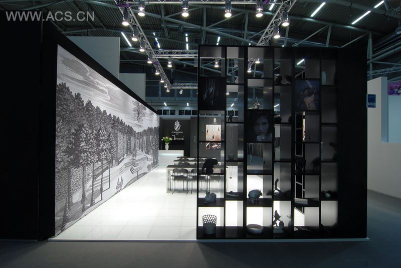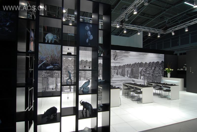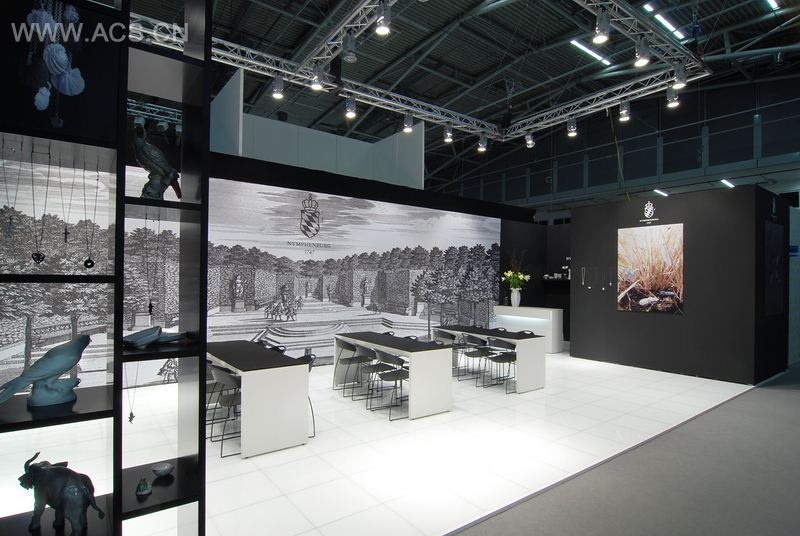 Arno设计公司为宁芬堡瓷器制造商搭建的展台是一种古典的设计概念,它既强调了公司的深厚底蕴,又反映了公司的现代发展。这个设计通风宽敞,清晰明了,设计形式也简化成了黑与白。