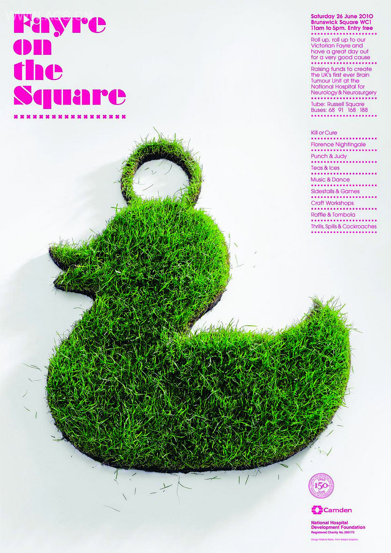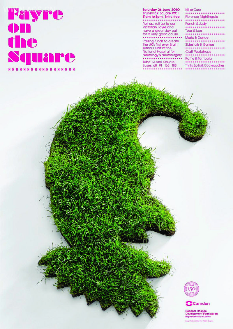 布伦瑞克广场的方案是在伦敦中心打造一个绿色空间,使用草皮制成轮廓,制作了海报、传单和活动标识,为“童话”这个传统概念添加了现代的曲线。