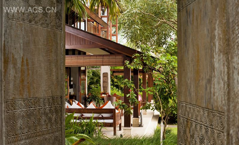 这个结构复杂的建筑包括一栋大主楼、一个客房、一个露台和一个佣人房。中心位置是游泳池,位于花园的中部。基础元素包括暖而高的木质屋顶、凉爽的大理石地面以及从露台进入的充足光线。这种条件下并不需要空调,但空调的安装能够为每个独立客房提供更极致的舒适。