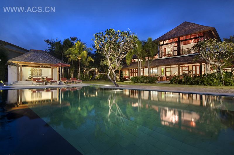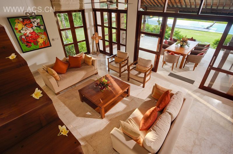 这座别墅坐落于巴厘南部半岛的山顶,南北朝向,面对着印度洋,俯瞰着金芭兰海湾。在晴朗的日子,你能够看到机场和巴厘岛火山。由于别墅开放的两面都有宜人而凉爽的自然风吹拂而过,使得内部十分舒适。