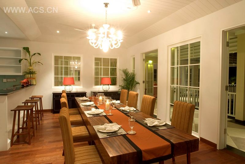 所有宽敞的房间都有一个高天花板,有足够的窗户能够最大化地看到外面的风景。所有房间的殖民釉面法式门窗形成了一个广阔的游廊。除了空调系统之外,所有的房间都有屋顶风扇和调光灯。