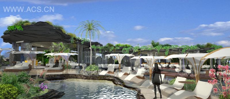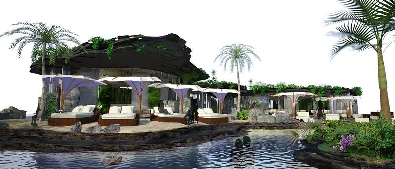 一项新建沙滩会所的项目以秘密为名来诠释设计理念。这个设计旨在尝试吸引一些大型投资商对巴厘岛南部进行开发。借用肯•亚当电影场景(詹姆斯•邦德)中的一些概念元素,融入了一些富饶的自然元素,整个设计显得丰富而奢华。大量的石头似乎悬挂于头顶,整个结构给人以错综复杂的感触。整个空间非常开放,但是在探寻这个会所的时候你能不时发现快乐,体会到“设计的惊喜”,而这一点又让这个空间给人带来很私人的感觉。沙滩也被带进了这个空间,而泻湖和内部的码头平台就像交融在地平线的远方。