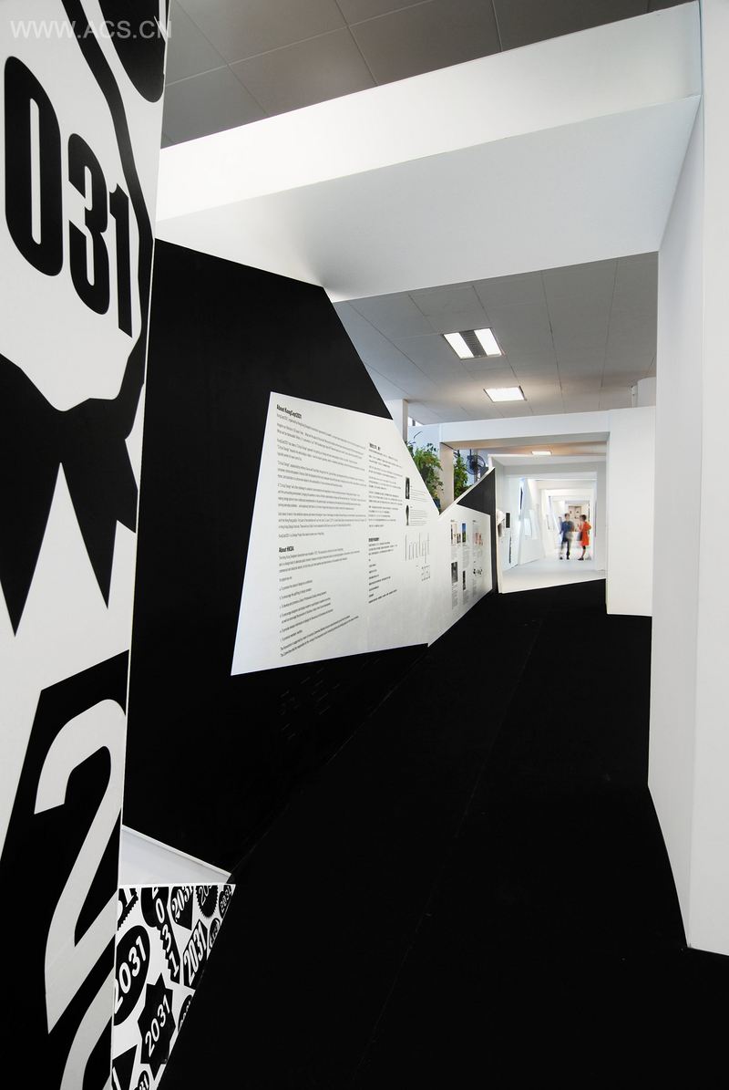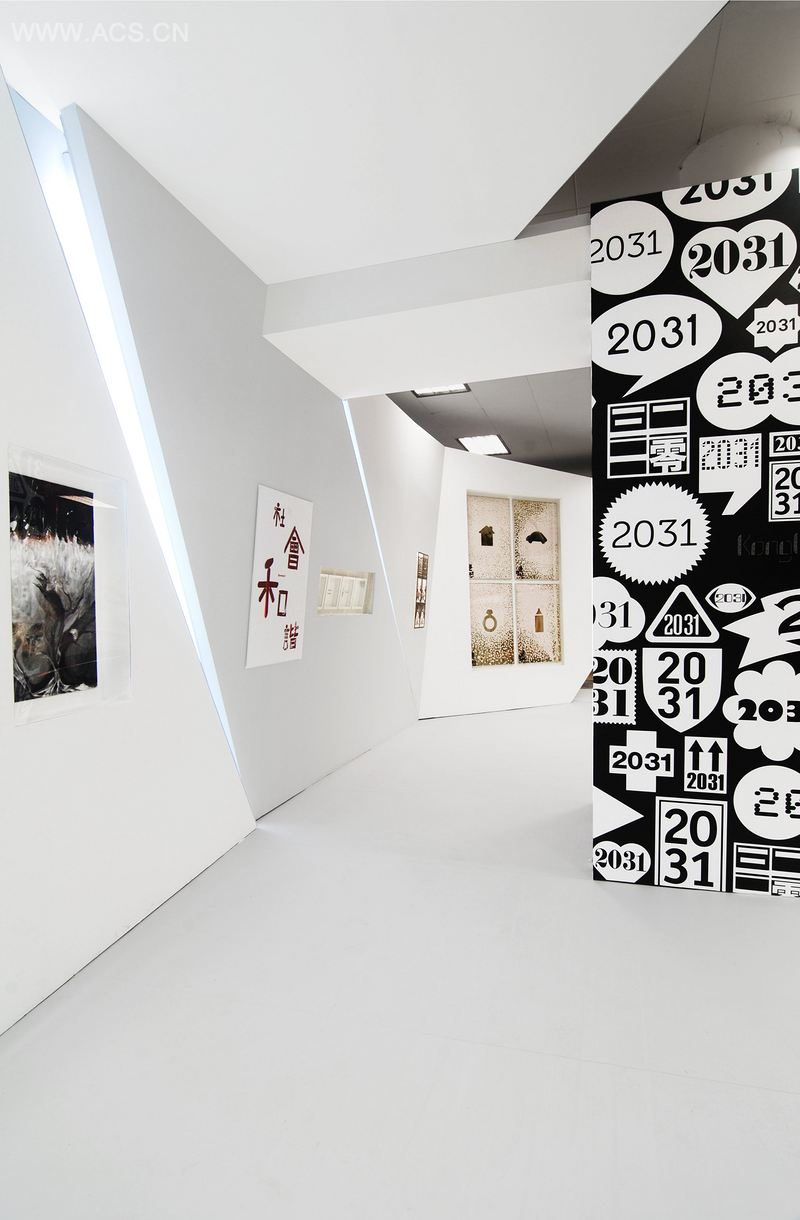 位于与旧街市场平行位置的空间美术馆在举办未来2031展览。新街道与旧市场形成了鲜明的对比,它拥有迷人的魔力,给街道上的人们营造出一种无形的吸引力。作为一条时间走廊和空间通道,这个精致而绝妙的三维美术馆陈列了2031年香港特区的产物和事件,让参观者们忍不住驻足停留,遐想着时间静止了。这个设计通过采用白色背景及装饰灯光营造出高光反差,从而让整体设计达到明亮和崭新的效果。开放式的概念被显现为:参观者能在整个美术馆通道的“敞开式墙面”中穿梭。