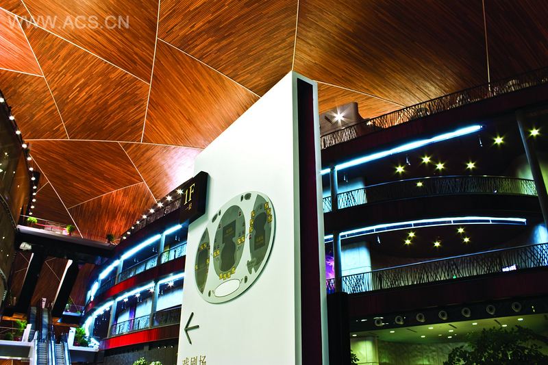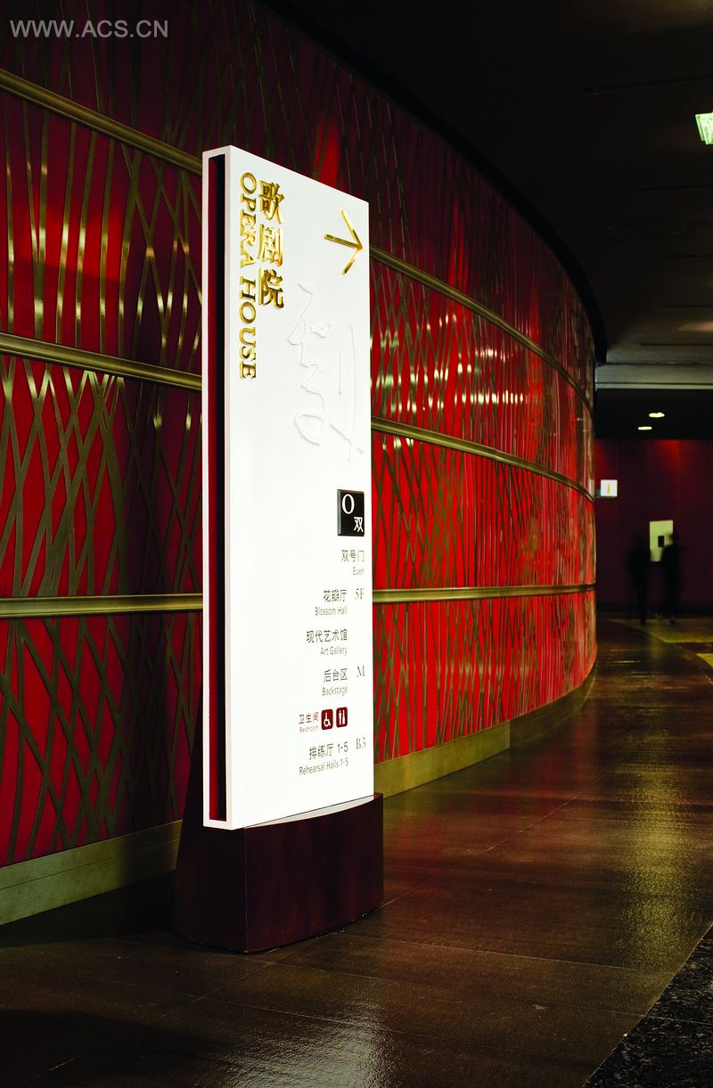在设计上考虑中国文化与西式现代建筑风格的融合,木质与烤漆的材料,中国书法字的应用,灵感来自中国宝盒露出的一抹红,恰到好处地表现了中国文化的传统,为现代化大剧院增添了传统的中国韵味。设计成功解决了人流导视系统混乱问题,并将中国文化完美地表现出来,为这座独一无二的建筑物增加了传统的延续与表现。
