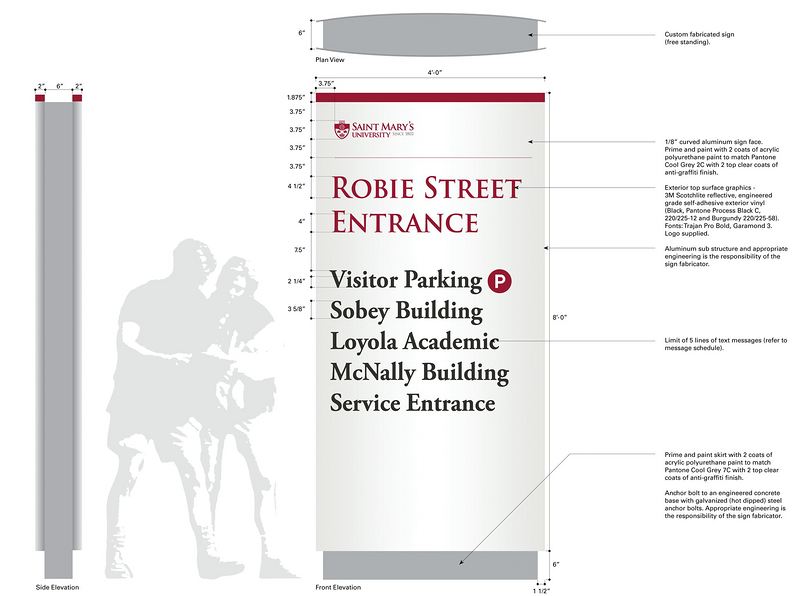 斯佩里设计为新斯科舍省哈利法克斯的圣玛丽大学整个校园开发和设计了综合的导示和标识项目方案,制定了详细的位置方案,表明每种指示牌的确切位置和数量。斯佩里设计也为这个导示项目制定了详细的信息安排,囊括了每个导示必需的文字信息、图标和方向箭头。项目设计了多种多样的户外和户内导示,帮助学生和游客在校园内快速找到道路。