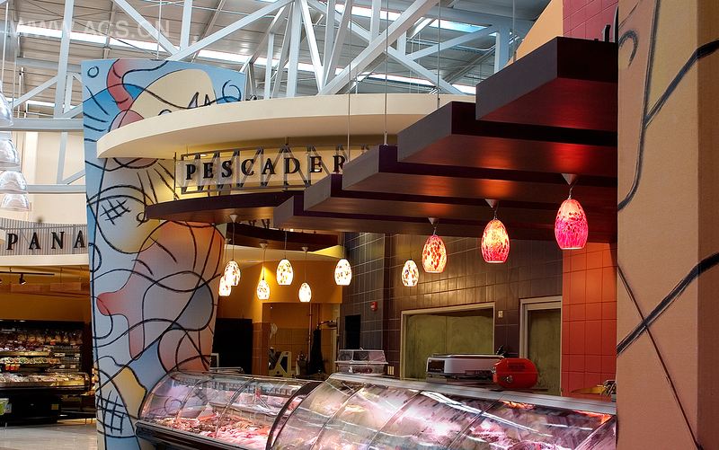 项目范围包括了对所有Auto Mercado的零售杂货架的重新设计,对室内设计、夹具、营销计划、部门身份、图形元素和视觉传达系统都进行了重新定位。整个商店通过使用缤纷多彩的瓷砖、动感的灯光、定制的配饰和精致的图形元素,为商店增加了视觉吸引力,在竞争中脱颖而出。