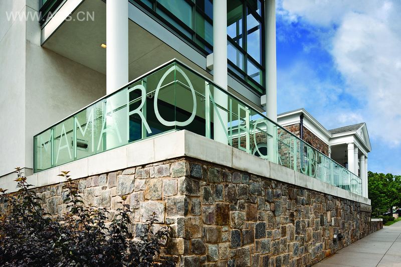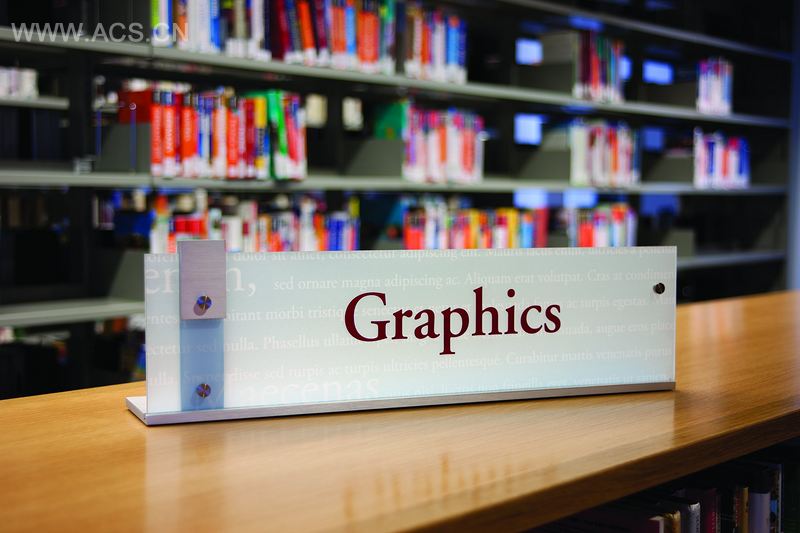 卡洛里&范登-艾登为一家图书馆设计了图形项目,融合了它的过去和现在。玻璃导示系统极具视觉识别性,同时可作为装饰。它成为了图书馆和社区的标志。殖民复兴建筑在当代扩建的不对称几何部分为室内导示系统的设计提供了灵感。