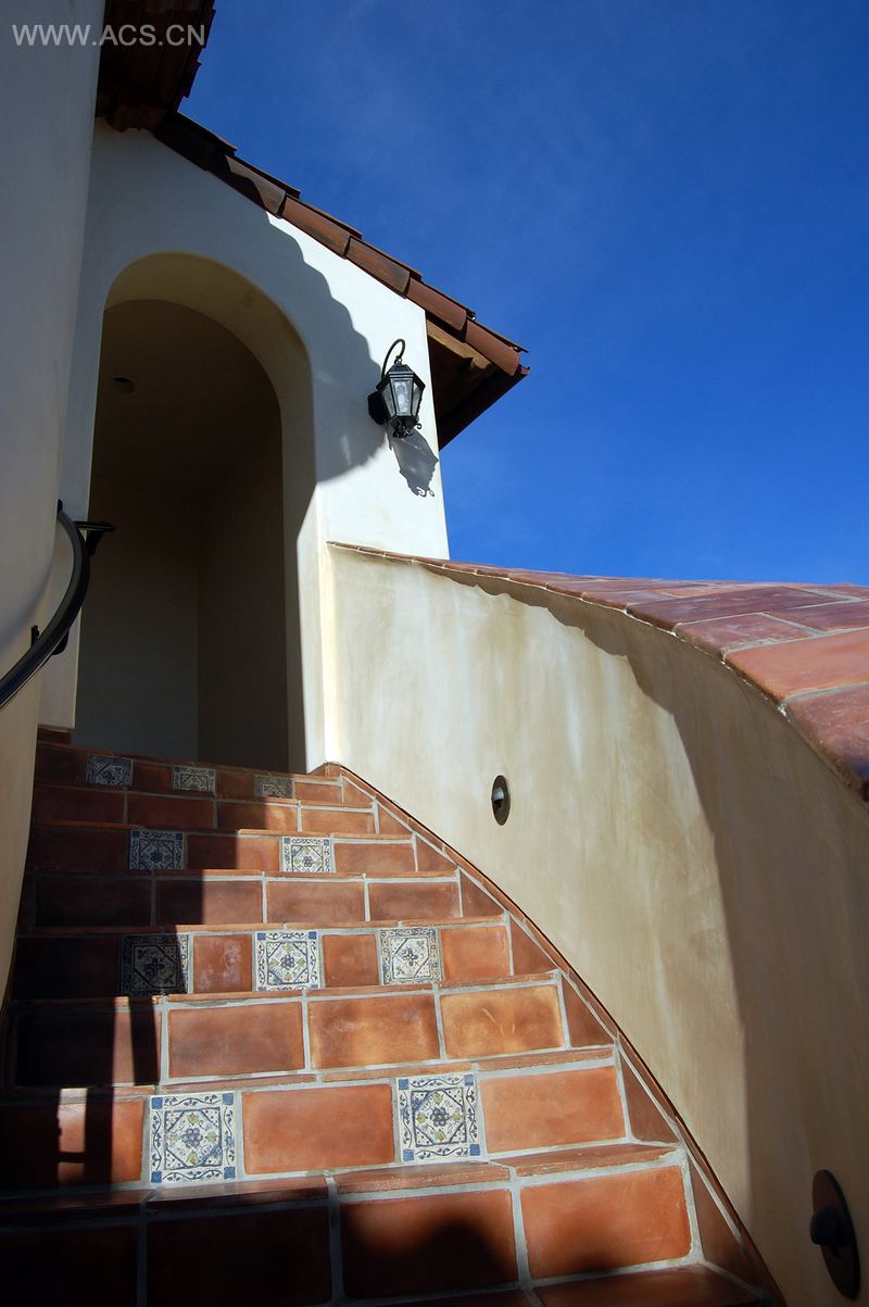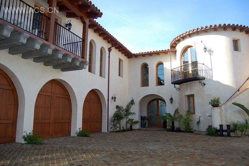 该建筑采用了就地浇铸的绝缘混凝土建造而成,它的整体非常充实和平稳,极为节能,而且难以被人为或自然因素所摧毁。设计师将传统西班牙殖民风格的建筑材料和细节运用在了宅邸的设计之中,屋子里展示了各种光滑的灰泥抛光装饰、油面磨光木、手制屋顶瓷片、天然石、锻铁阳台、混凝土支柱以及一个风格大胆的悬臂式旋转楼梯。所有的物件都是由客户从新西兰运回来的单棵古老胡桃树制作而成的。