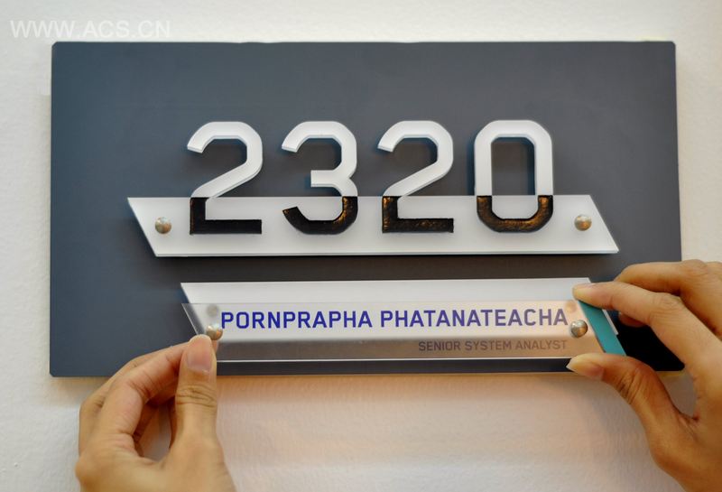 我们的导示系统有着一致性、清晰而大小适中的字体,企业的色彩基调,灵活的选材,设计节约了成本,导示简单易用,其中的数字和名字都多层次展示。