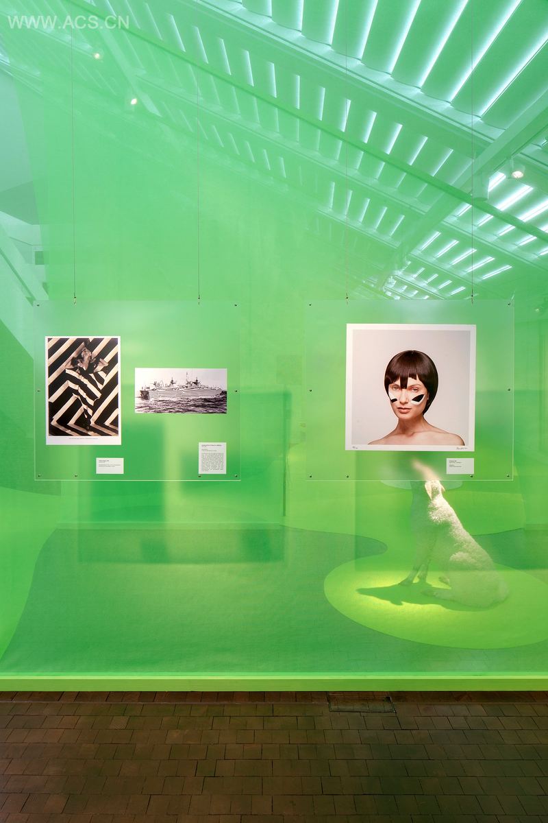 展览被构思为一个文化及知觉体验。织物面充当了过滤器的角色,在空间的深度上一层叠一层。这个效果通过自然及人造光线的系统调整而增强了。参观者沉浸在一个被灯光反射成绿色的“有毒”世界里,通过它的空间及概念层次,展示了“防御”的主题深度。