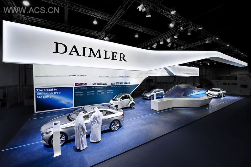 在阿布扎比举行的世界未来能源峰会,是全世界能源及环境领域方面最大型、最重要的会议之一。此次,Triad设计机构为戴姆勒汽车公司设计了与此期间同时举办的商品交易会展览展台以及外部场地的测试站。商品交易会的展台以及所有相关的活动都传达出公司在可持续性道路上的线路图,还传达出戴姆勒在这个领域早已让人印象深刻的宣言。新设计的基本视觉元素既传递出了戴姆勒在未来道路上的驱动力以及灵活性,又反映出了它的机动性在多轨道发展的基本理念。