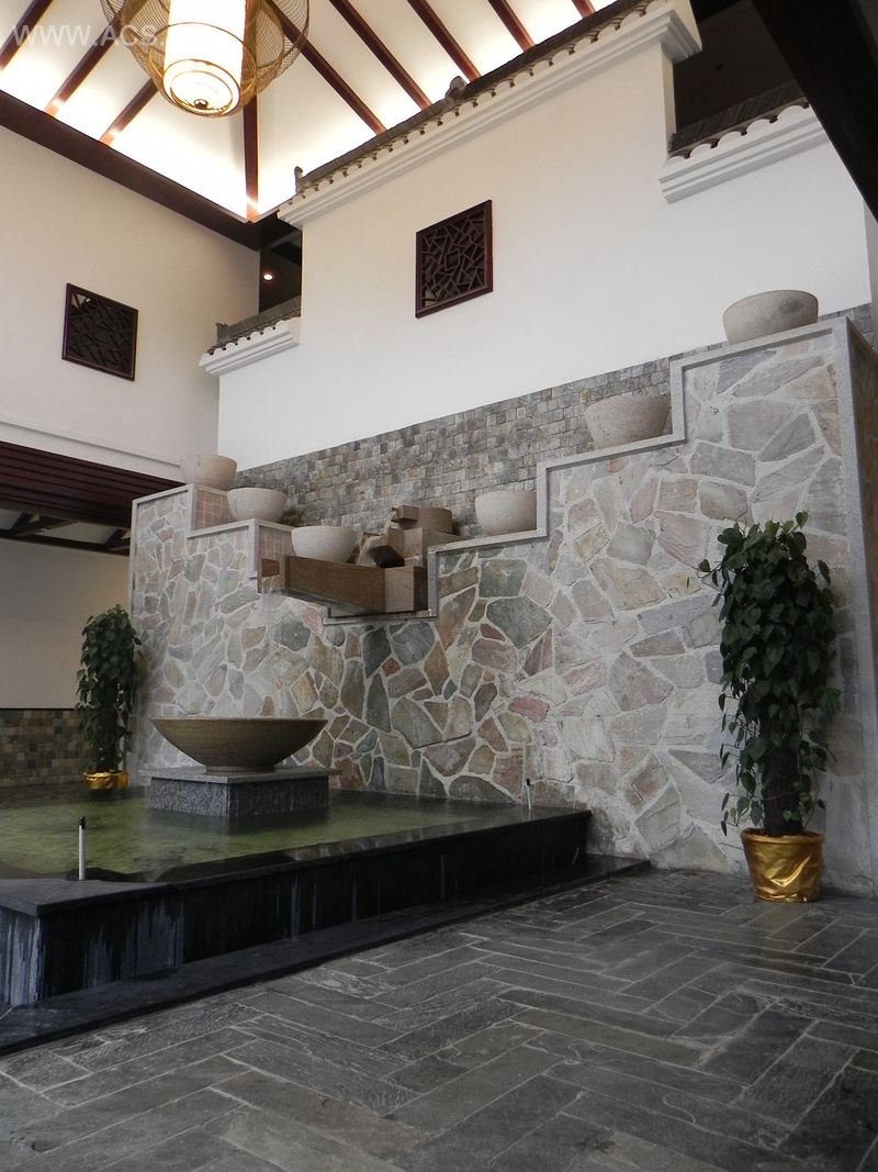 整个设计理念以中国道家五行理念为创意脉络,金、木、水、火、土,互相共生。以水为主体连贯全场景观,装饰用材以自然亲切为本,互相穿插,营造休闲文化的自然主题,让来渡假都倍感亲切、放松。 建筑主体连绵起伏,外观朴素大方,背倚苍松翠柏、近邻葱郁山峦,远离喧嚣闹市,是休闲养性、渡假的绝佳胜地。
