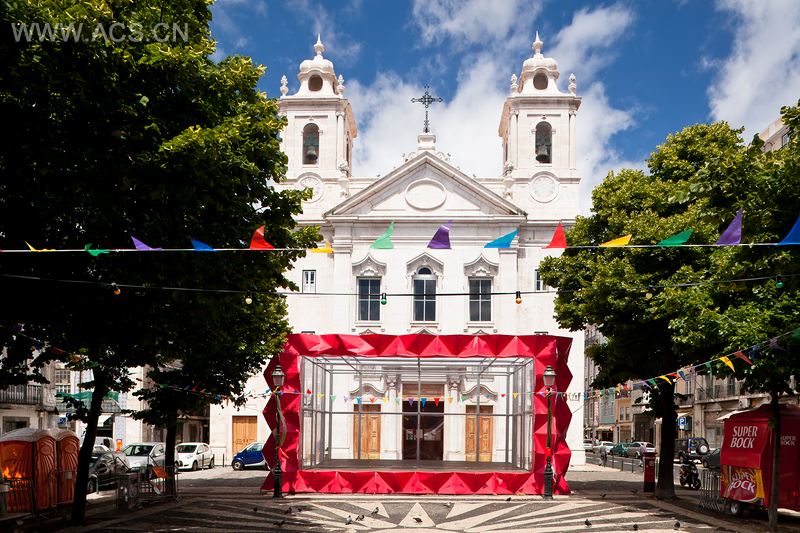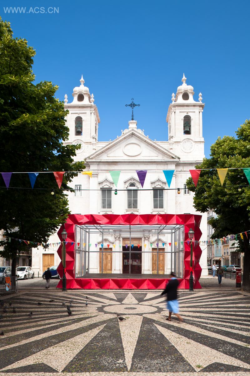 除开明显的建筑艺术、历史价值和它坐落于里斯本市的中心位置,圣保罗广场已经不仅仅是一个通往市中心区地下会所和酒吧的通道。趁着为这个城市的守护神圣安东尼奥举行庆祝活动,整个6月,文化协会Parafernália与Ordem dos Arquitectos联合,以恢复这片区域的活力。当时的想法是,主要侧重于打造一个有吸引力的舞台,为受邀的艺术家们提供一个互动的平台。在资源不足与希望打造一个大型的舞台的愿望相悖的情况下,设计师们选用了轻质的结构,是加强其作为城市标志的催化剂,同时保留并尊重广场的综合空间层次。该项目需要使用一定的色彩作为城市活化剂,与老城区的柔和的颜色形成鲜明的对比。白天,里斯本阳光的照射使这个建筑物发出红色的光。到了晚上,活动开始时,舞台被照亮成红色,弯曲的框架很是耀眼。