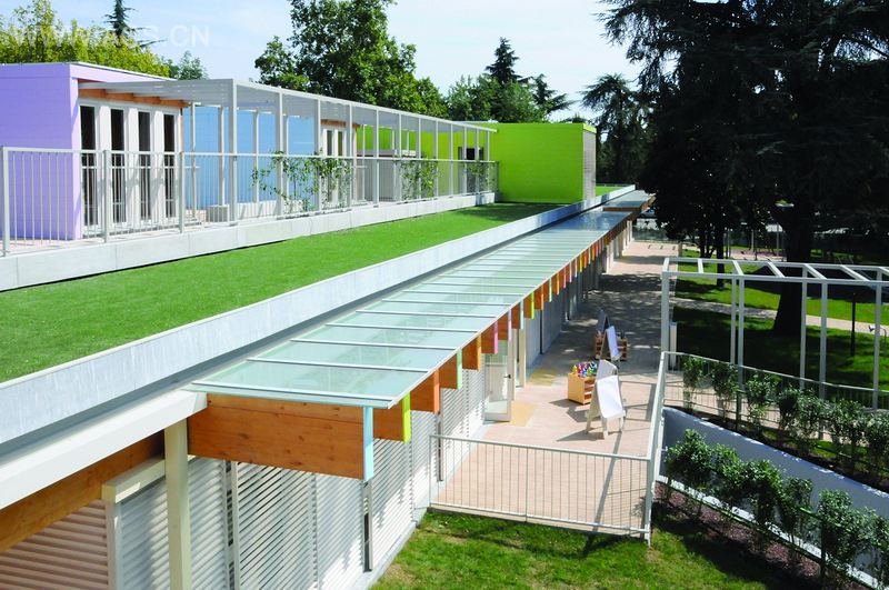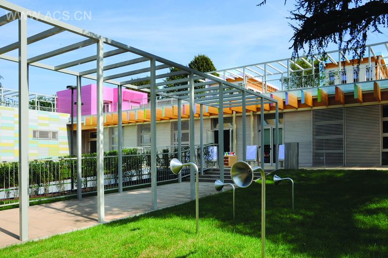 ENI幼儿园拥有一个学步幼儿中心以及一个有163名0.5-6岁孩子的学前幼儿园。这是意大利ENT跨国石油汽油公司麾下的一所幼儿园,但面向的群体是当地居民的孩子。建筑围绕一个广场而建,三个没有走廊的广场腾出了更多的空间举办家庭活动,能以不同的方式玩乐和用餐。面向广场的教室根据不同的年龄群体来区分。由于室内有了与瑞吉欧儿童组织合作的PLAY+家具,它们成为了一种教学工具。三个工作室以及五个迷你工作室散布在建筑内,这里可供所有不同年龄的孩子举办与艺术和新技术相关的特殊活动。一个场内厨房提供了有机食品和食品制作工作室。主要工作室作为实验室使用,同时也面向整座城市供外来者使用。瑞吉欧儿童组织协作参加了设计之后,正监管着教学管理以及教师们的专业发展。