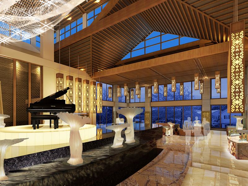 腾龙国际度假酒店地处利川市东北角民族风情园,位于腾龙大道与清江交汇处。通过评审的方案围绕“天地人”的设计理念,拟打造一个“现代的、利川的、具有地方民族特色的五星级国际度假酒店”。该酒店客房区将设401个自然间,其中标间324间,两开间套房36套,五开间的总统套房1套。另外还将修建61栋独栋别墅和10栋双联别墅。该五星级度假酒店的建成,对于实现腾龙洞景区旅游产业的快速发展,迅速带动旅游区周边产业,提升腾龙洞景区的服务水平,将起到相当重要的作用,同时也将成为利川旅游的亮点和特色之一。