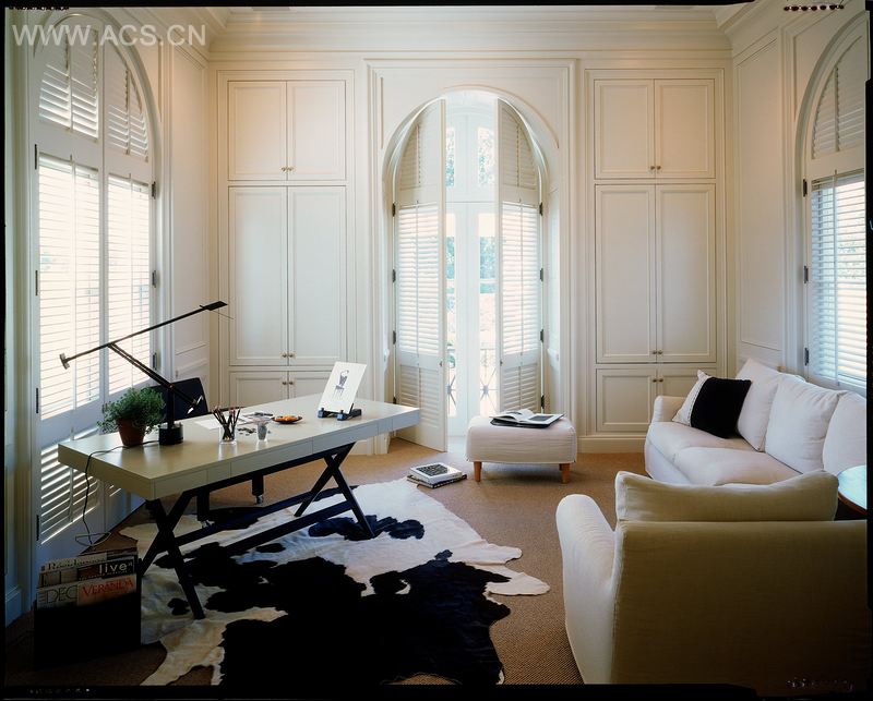 在密西西比河格尔夫波特沙滩上建起的这座7000平方英尺住宅,你能看到新世界与旧世界的碰撞和交融。这座房子诠释出了优雅的对称美与舒适安逸的魅力气息,它是帕拉弟奥建筑风格与法国西印度建筑风格的当代结合之作。而其结构形式 —— 被四个庭阁所围绕的中央建筑体 —— 其建筑风格可以追溯至帕拉第奥时期,它的四坡屋顶覆盖了一层板岩,这是法国殖民地建筑的标志特点。居所内的各处都安装了百叶窗,它们过滤了日光和海风,并营造了岛屿居所的舒适与浪漫情怀。建筑内部,部分的拱廊、雕刻式的石灰岩壁炉架以及拱形装饰都采用了精炼优美的法式设计风格,它们能让人想起欧洲风格的优雅。除此以外,该项目并未采用过于复杂的装饰细节,选色上也采用了朴素的单色调,这样的设计体现出了该房子统一而现代的一面。