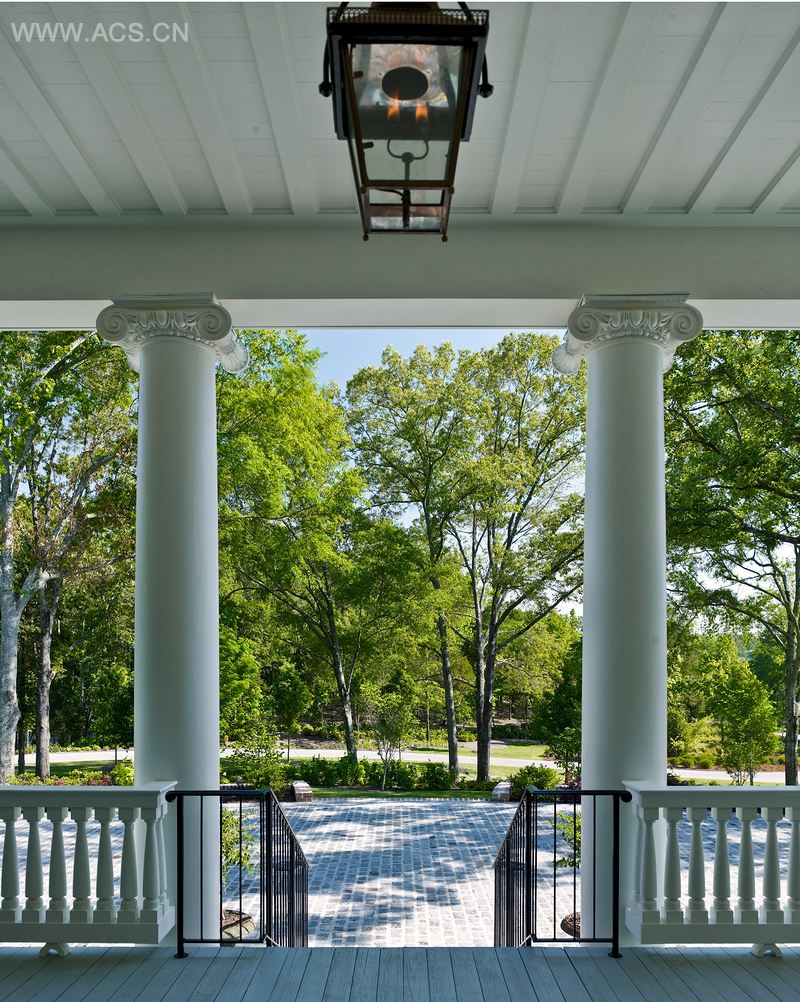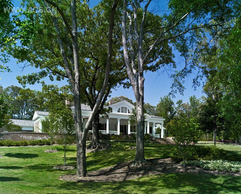 塔特将不同的古典风格元素结合在一起,并将它们充分地展现在了这个位于密西西比河牛津的9000英尺房子中。他的设计灵感来源于纳奇兹的一座联邦式房屋,但这座房屋采用的是希腊复古式风格,所以这座华丽的南方风格建筑营造了一种庄重而轻微带有女性柔美气质的氛围。与此同时,精美的爱奥尼亚柱头赋予了前廊一种优美感,这也与联邦式的设计风格更为一致,而带有多利安式柱头的厚重粉刷砖柱子也共同组成了背后两座附属建筑的纯净希腊复古式立面。在房子内部,塔特打造出了一个虚构的“过往故事” —— 他在新房子中融入了旧居所的特色。整个设计暗示了这座房子曾经是一间带有后部门廊的一室户联邦式居所,书房和饭厅敞开于双吊钩的高窗处,狭长的客厅就像是封闭式的门廊。