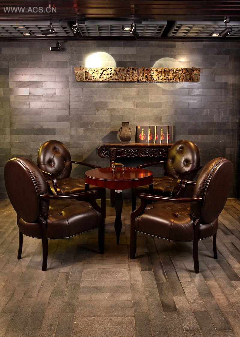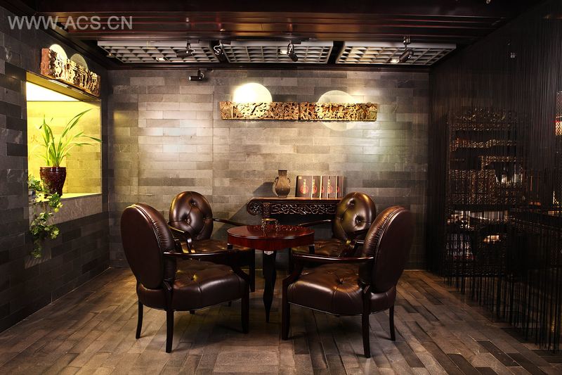 主要材料:仿古砖,铝格栅,灰砖,红樱桃木作,金属帘